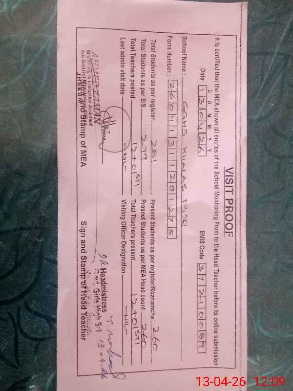 | EMIS Code: 37210089 | Name of School: GGHS KHALAS PUR | |||