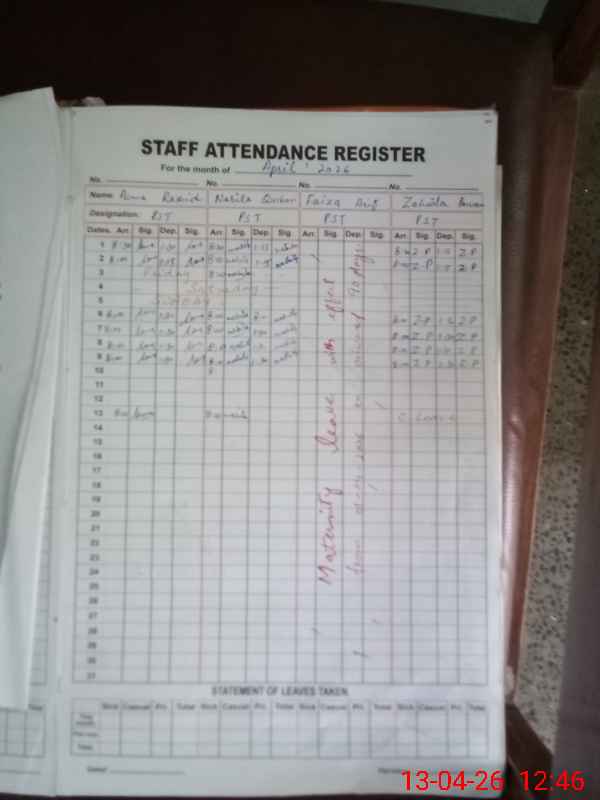 | Remarks (Use Separate Page if Required): Students Attendance Registers are yet not updated completely Data as per provided by School Staff and found during physical visit | |||||
