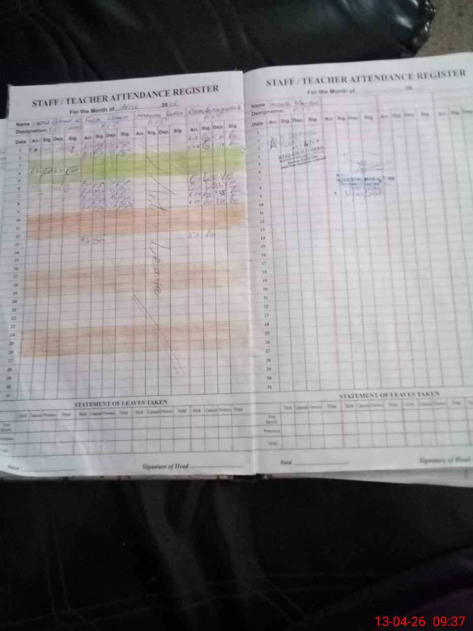 Leave Type | Remarks for Today (Leave,Training, Exam,Absent,Late, Other Duty) |