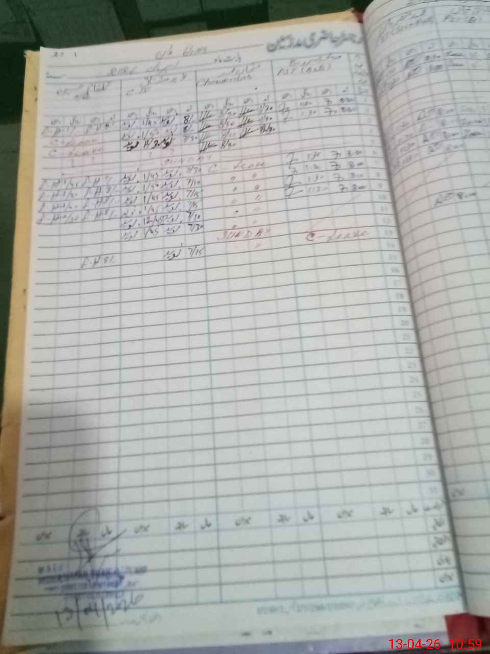 | CNIC | Full Name | Designation | R/C | Absence During Last Calender Month |