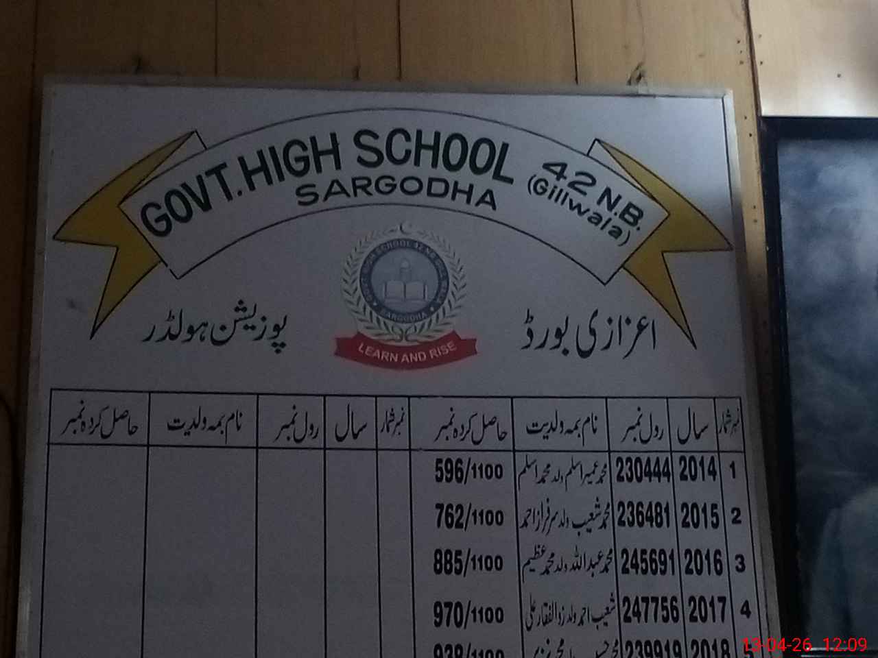 | EMIS Code: 38420130 | Name of School: GHS CHAK NO.42 NB GILL WALA | |||