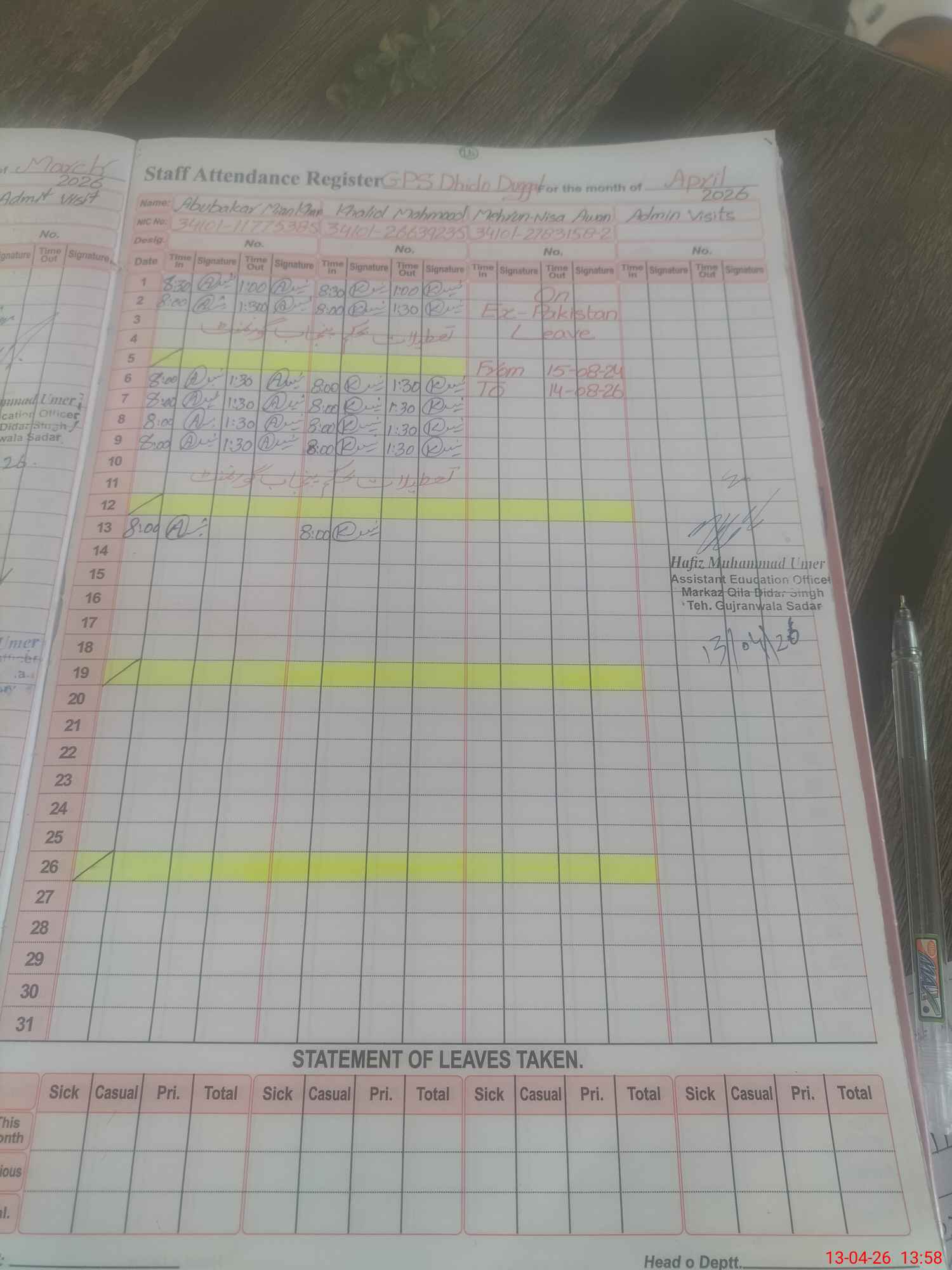 | Leave | Duty | Absent | Maternity | Medical | Ex- Pak |