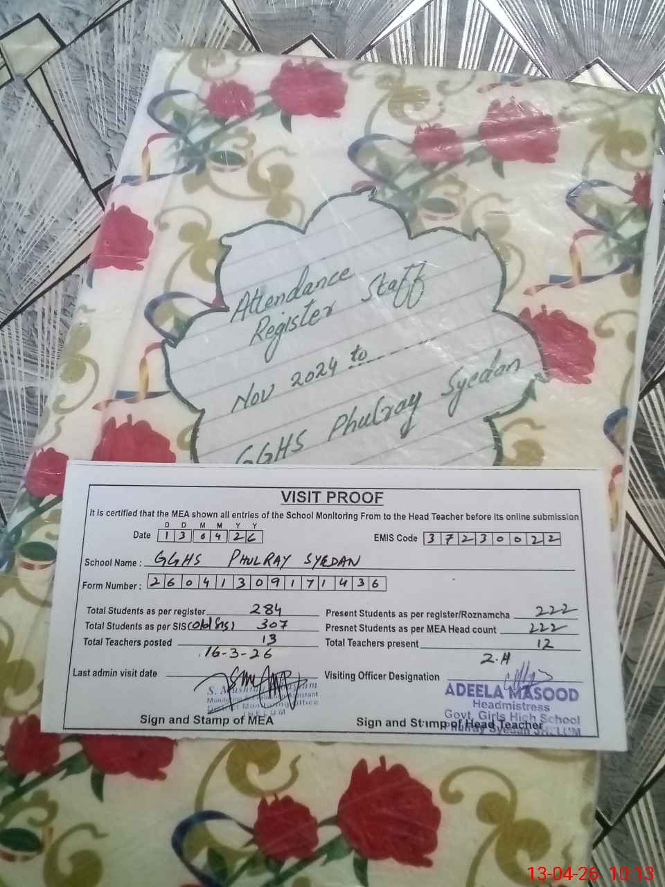 | Attendance Register | Head Teacher | MEA with School | Visit Proof |