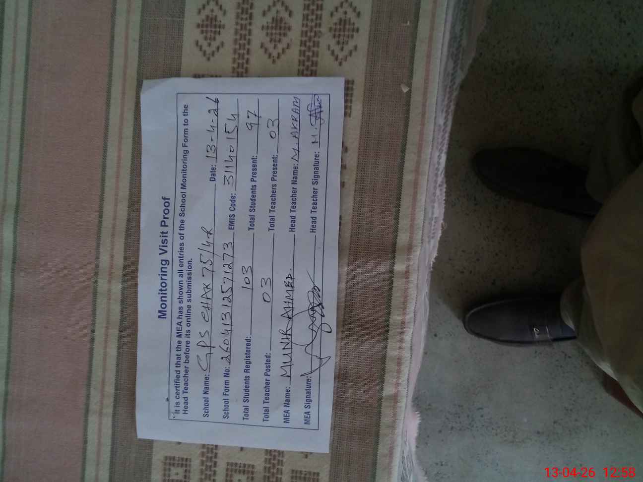 | EMIS Code: 31140154 | Name of School: GPS CHAK NO. 75/4-R | |||