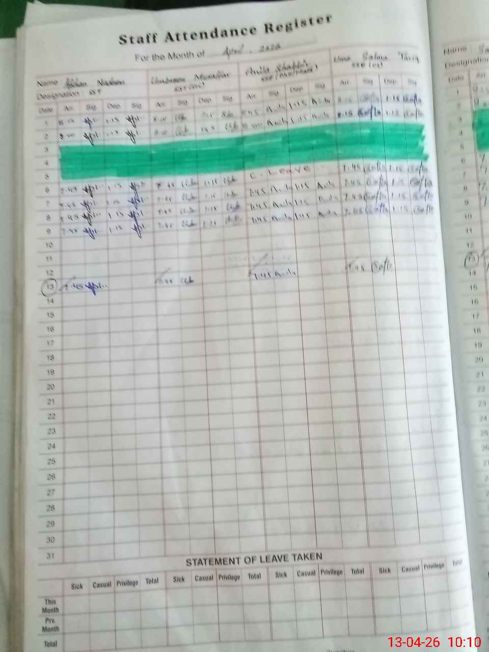 | 37**** | Ta**** Ma**** | SWEEPER | Regular | 30 | 0 | 0 | 0 | 26 | 0 | 0 | 0 | 4 | Medical |