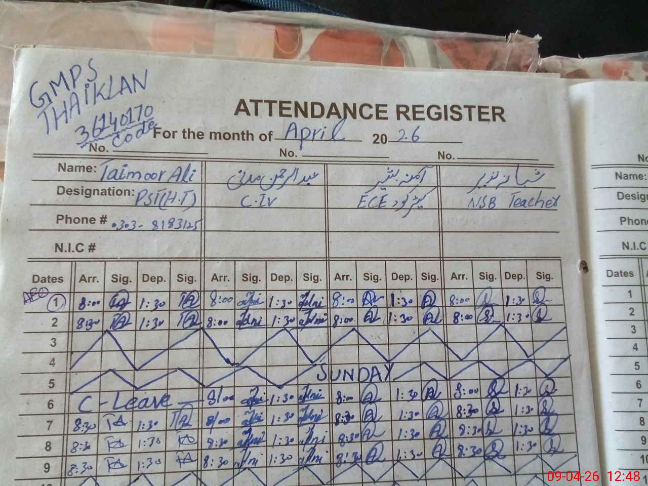 | Name: Ta**** Al**** Designation: (School Headmaster's/Headmistress's) PST Phone/Cell Number: 03**** |