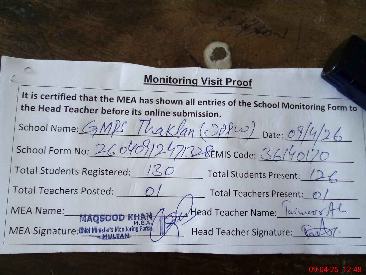 | EMIS Code: 36140170 | Name of School: GMPS THAKLAN JALALPUR PIRWALA | |||