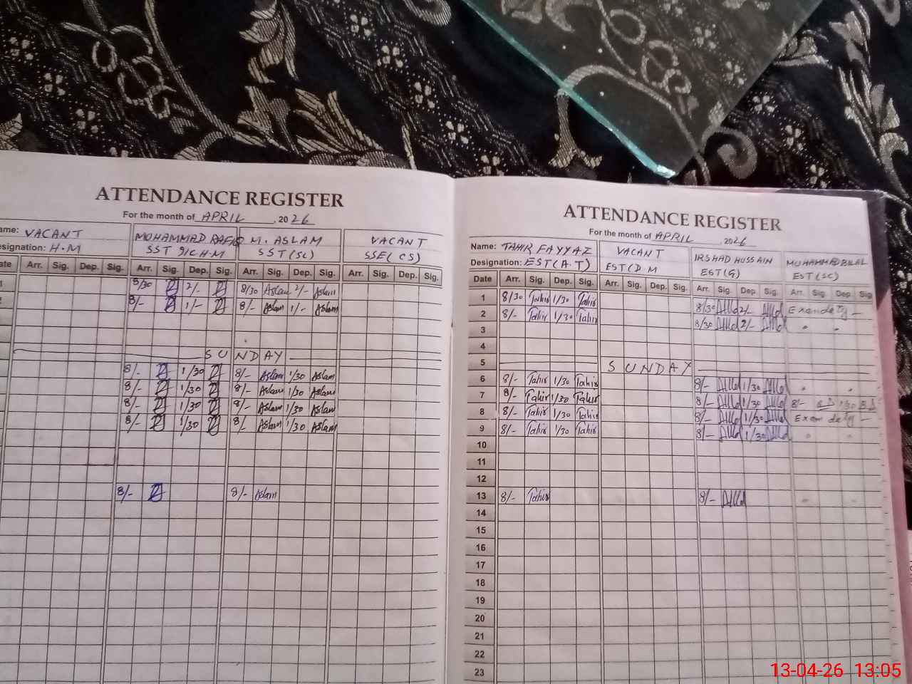 | CNIC | Full Name | Designation | R/C | Absence During Last Calender Month |