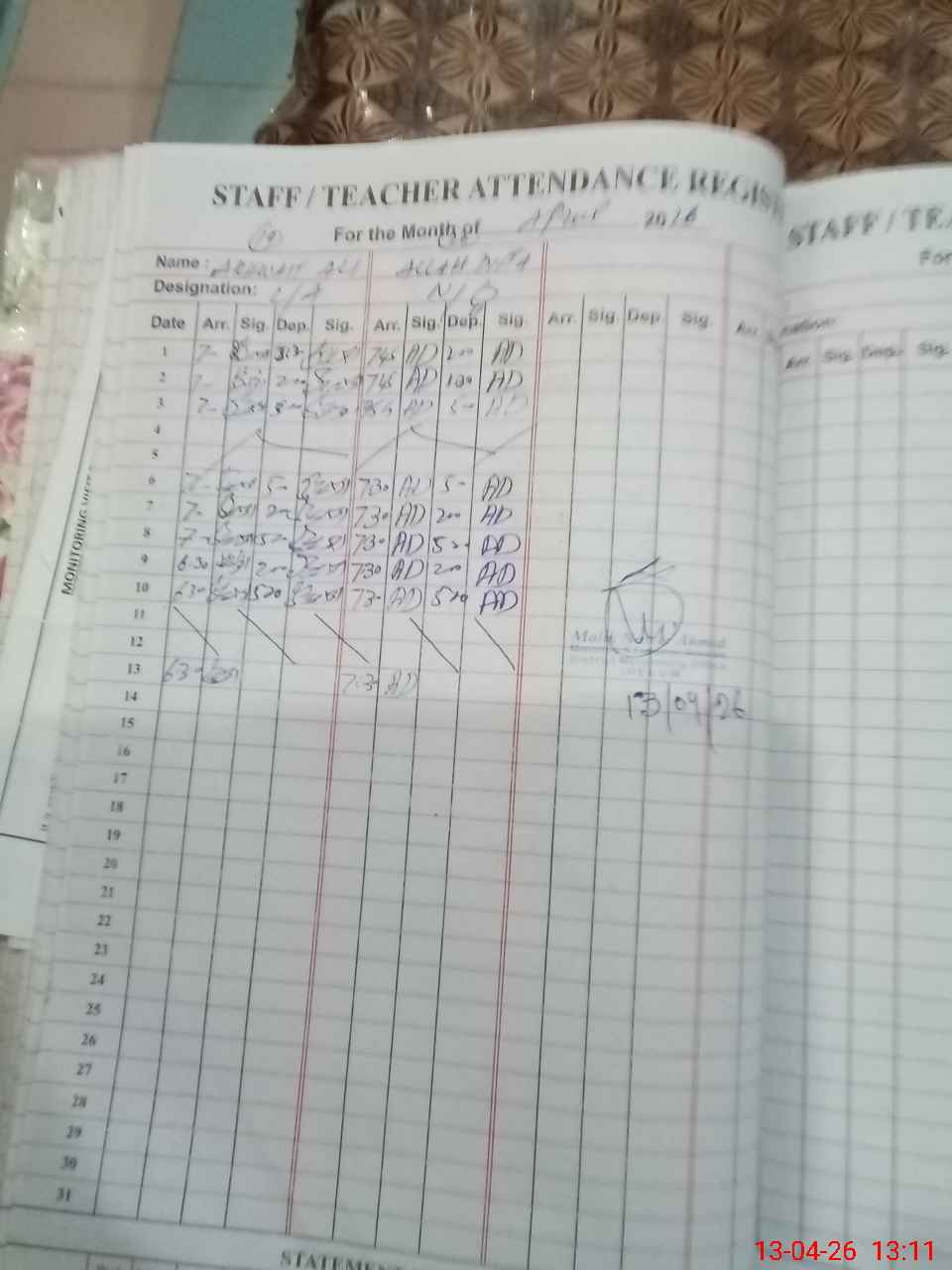 | 37**** | Fa**** Me**** | SST Arts | Regular | 0 | 0 | 0 | 0 | 0 | 0 | 0 | 0 | 0 | Exam Duty |