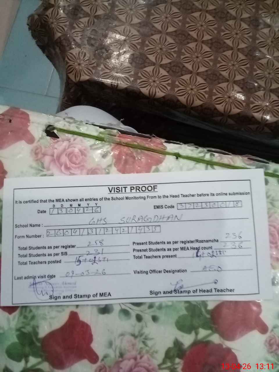 | EMIS Code: 37230018 | Name of School: GHS SURGDHAN | |||