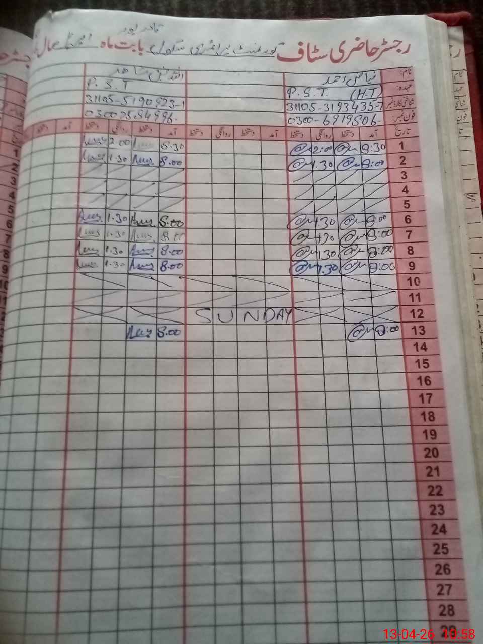 | Name: FI**** AH**** Designation: (School Headmaster's/Headmistress's) P S T Phone/Cell Number: 03**** |