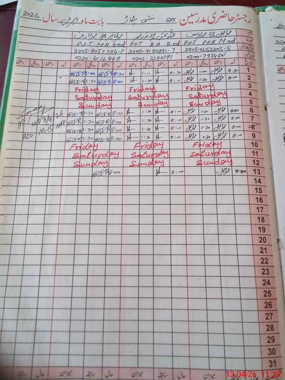 | Name: Mu**** Aj**** Designation: (School Headmaster's/Headmistress's) PST Phone/Cell Number: 03**** |
