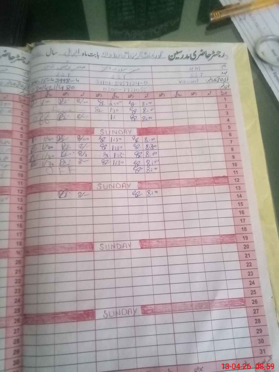 | 31**** | MMu**** Kh**** | JC | 0 | 0 | 0 | 0 | 0 | 0 | 0 | 0 | 0 | Absent (Un-Authorized) | |