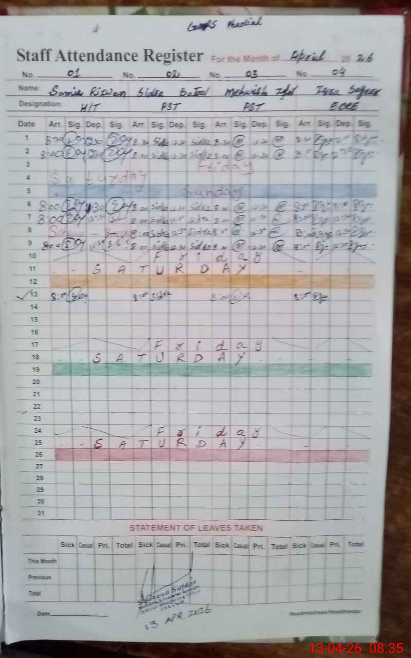 | Attendance Register | Head Teacher | MEA with School | Visit Proof |