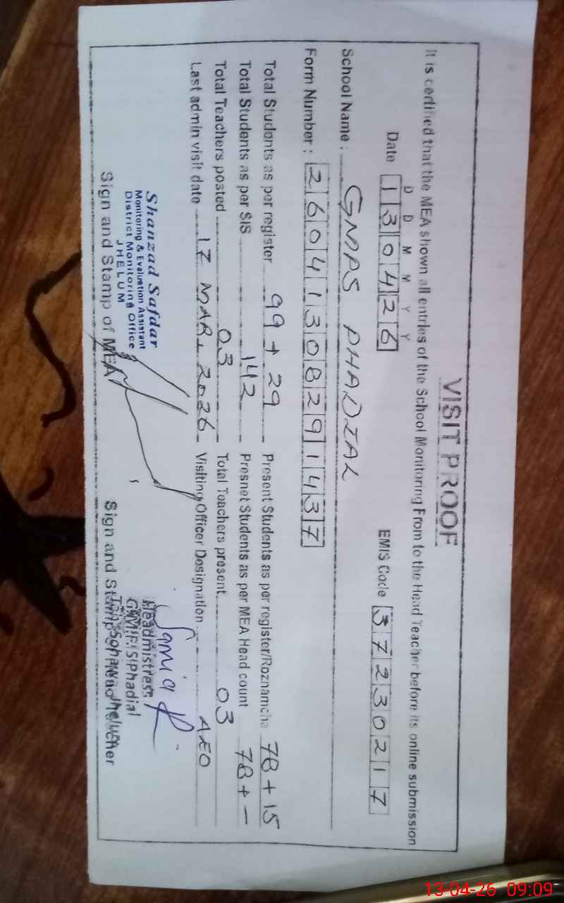 | EMIS Code: 37230217 | Name of School: GMPS PHADIAL | |||