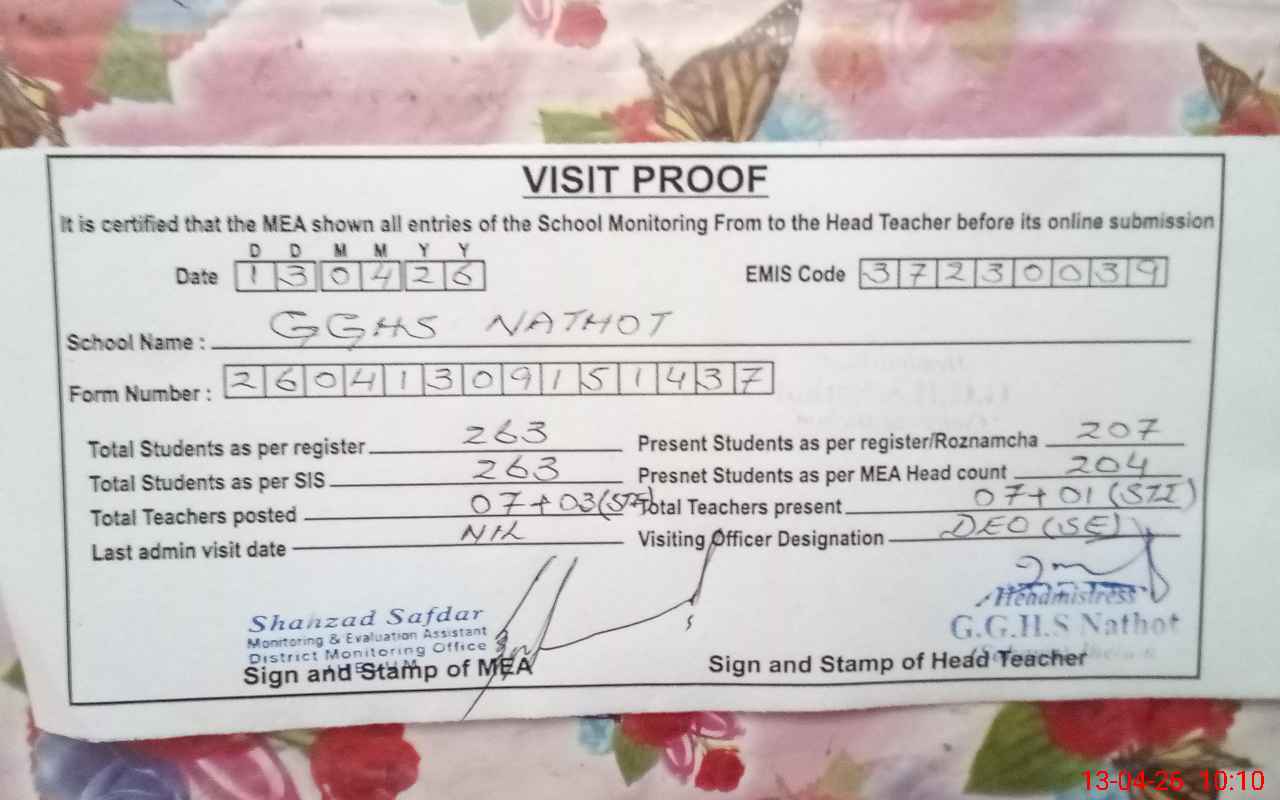 | EMIS Code: 37230039 | Name of School: GGHS NATHOT | |||
