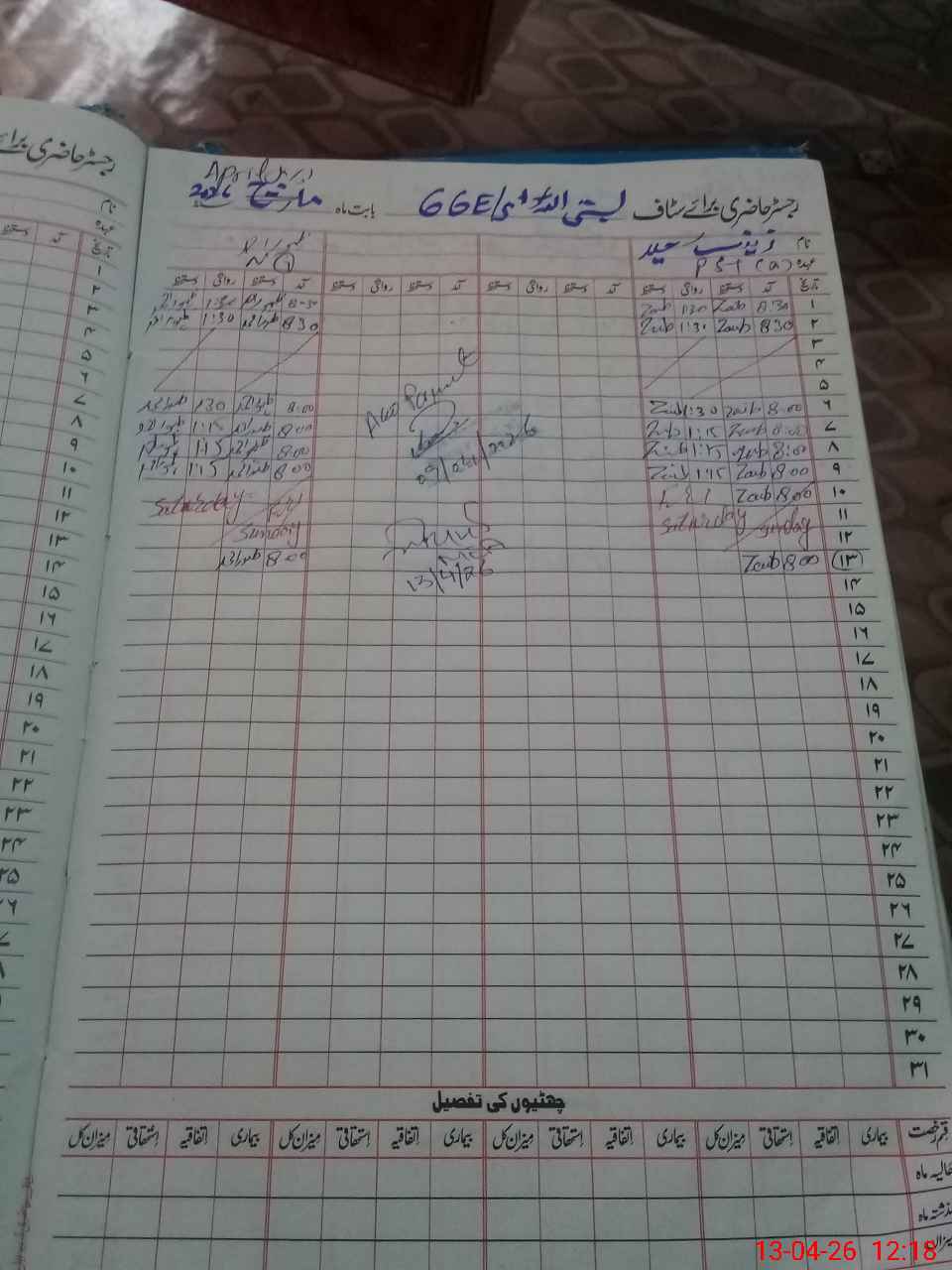 | CNIC | Full Name | Designation | R/C | Absence During Last Calender Month |