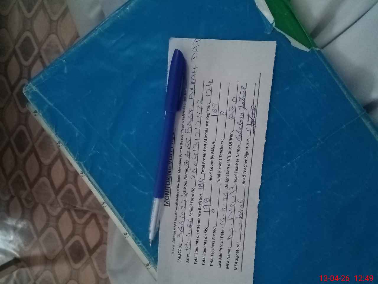 | Attendance Register | Head Teacher | MEA with School | Visit Proof |