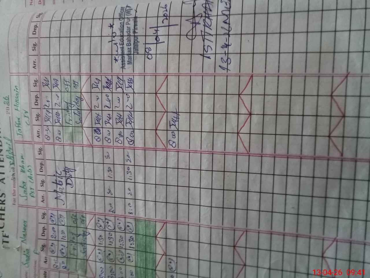 | 36**** | Sa**** Kh**** | PST Arts | Regular | 0 | 0 | 0 | 0 | 0 | 0 | 0 | 0 | 0 | Exam Duty |
