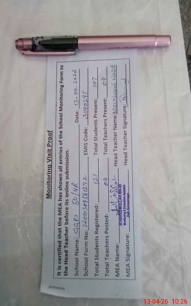 | Attendance Register | Head Teacher | MEA with School | Visit Proof |