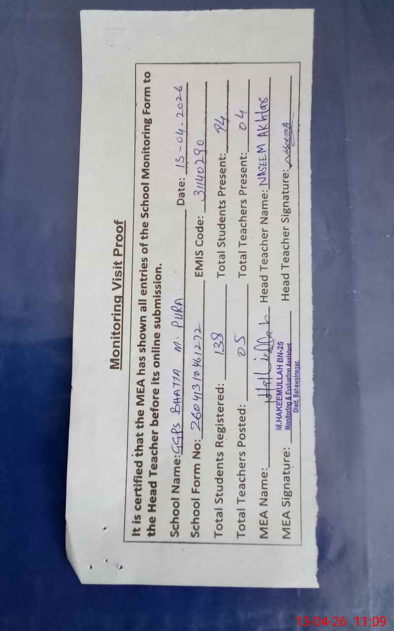 | EMIS Code: 31140290 | Name of School: GGPS BHATTA MUHAMMAD PURA | |||