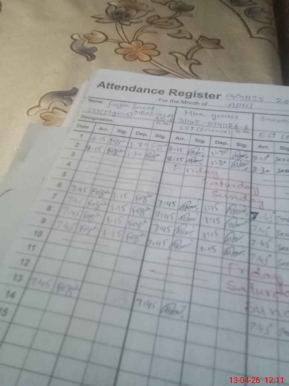 | Name: Fa**** Sa**** Designation: (School Headmaster's/Headmistress's) S S S Phy Phone/Cell Number: 03**** |