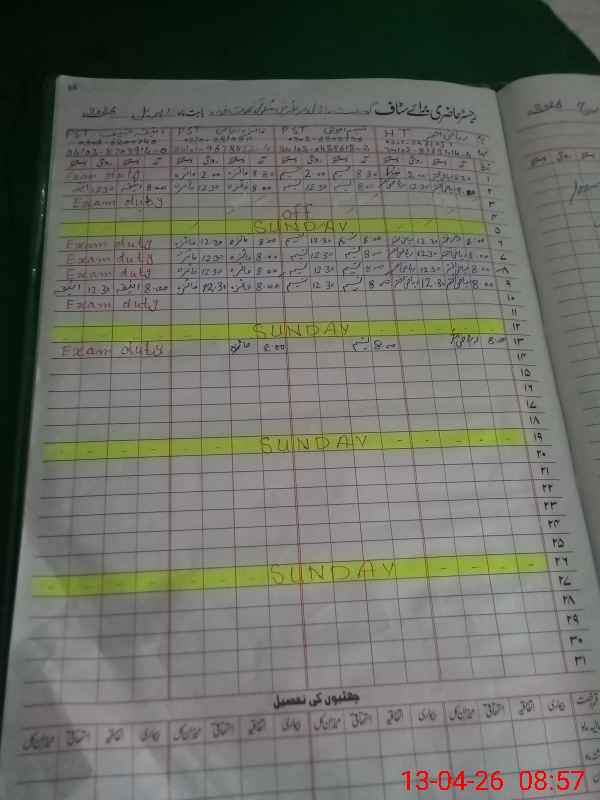 | 34**** | An**** Ha**** | PST Science/Maths | Regular | 0 | 0 | 0 | 0 | 0 | 0 | 0 | 0 | 0 | Exam Duty |