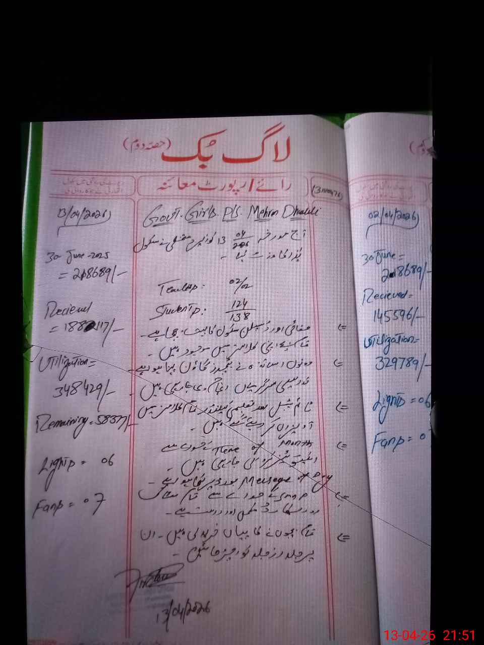| EMIS Code: 31110476 | Name of School: GGPS MEHRAM DHUDY | |||