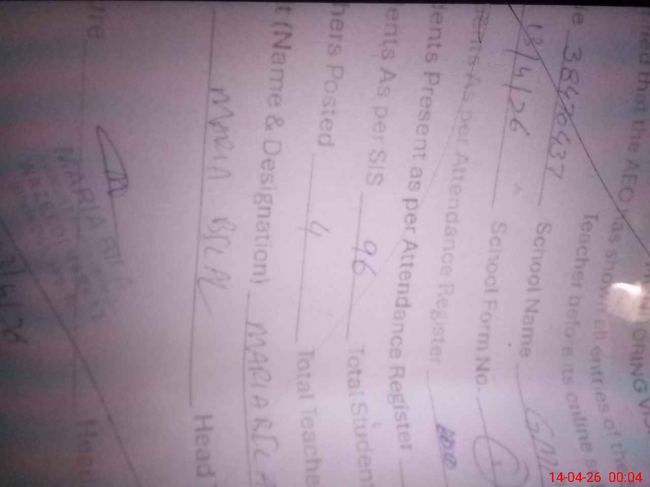 | Attendance Register | Head Teacher | MEA with School | Visit Proof |