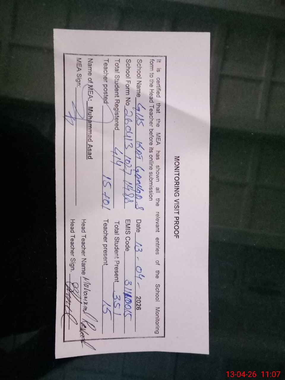 | EMIS Code: 31110015 | Name of School: GHS KAT GANGA SINGH | |||