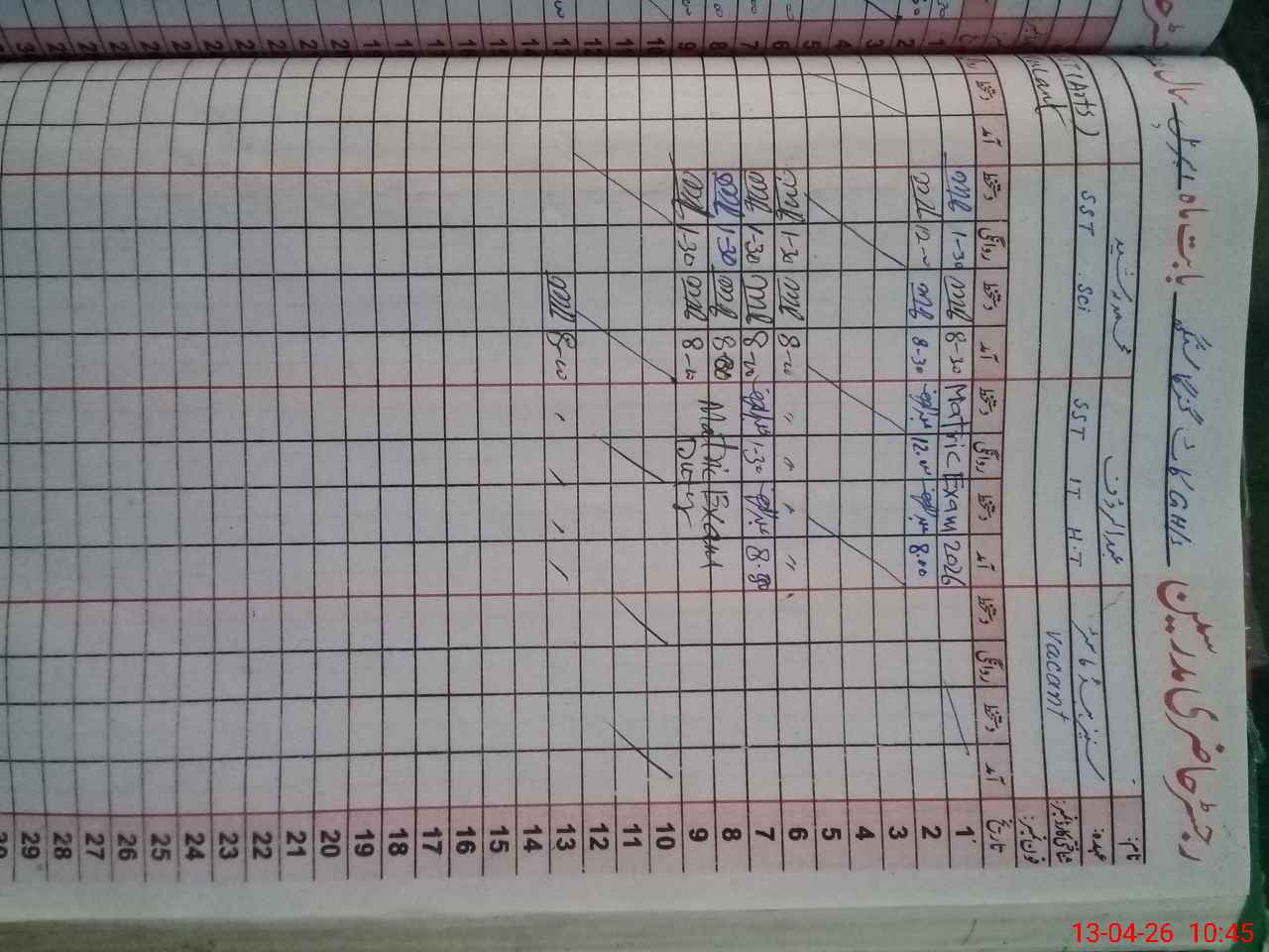 | 31**** | Ab**** Ra**** | SST Computer Science | Regular | 0 | 0 | 0 | 0 | 0 | 0 | 0 | 0 | 0 | Exam Duty |