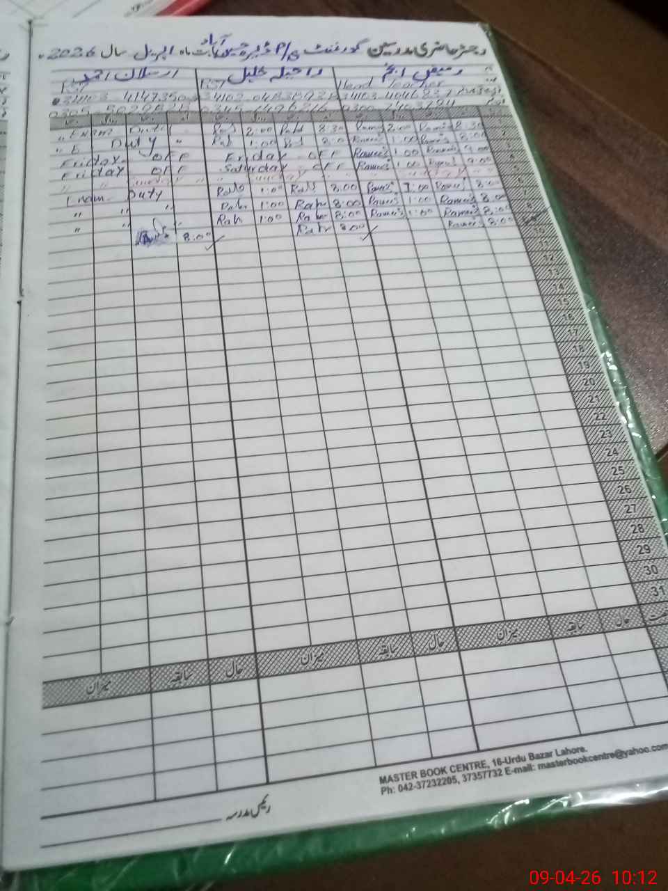 | Leave | Duty | Absent | Maternity | Medical | Ex- Pak |