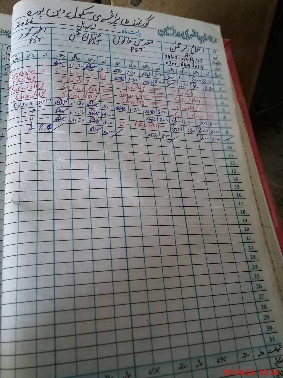 | Name: In**** UlRe**** Designation: (School Headmaster's/Headmistress's) PST Phone/Cell Number: 03**** |