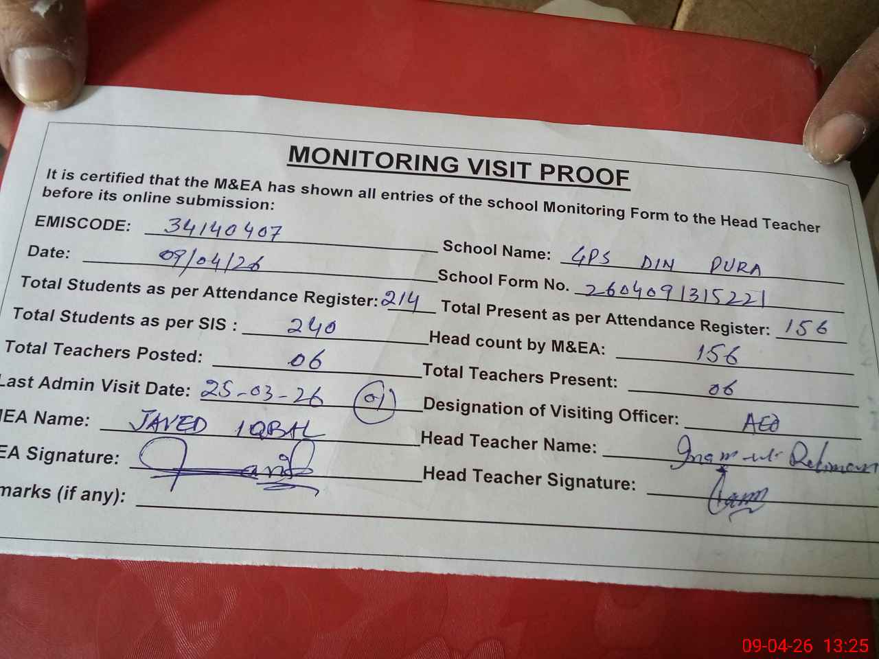 | EMIS Code: 34140407 | Name of School: GPS DIN PURA | |||