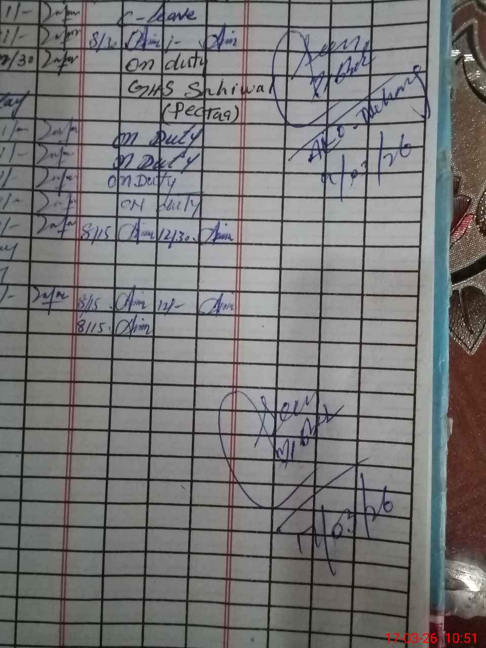 | Leave | Duty | Absent | Maternity | Medical | Ex- Pak |