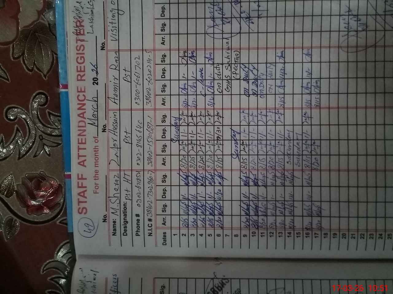 | Name: MU**** SH**** Designation: (School Headmaster's/Headmistress's) PST Phone/Cell Number: 03**** |