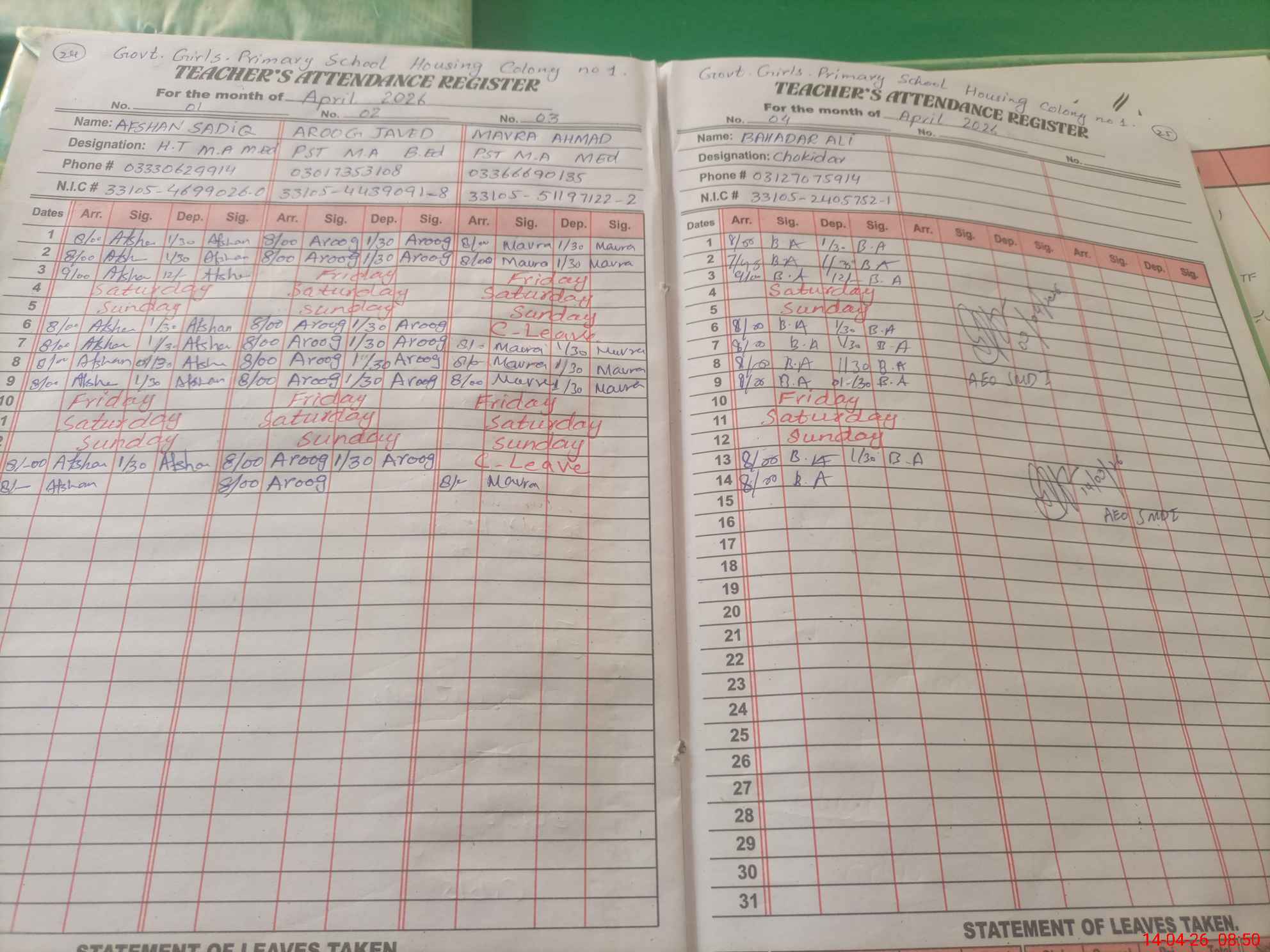 | Name: Af**** Sa**** Designation: (School Headmaster's/Headmistress's) PST Phone/Cell Number: 03**** |