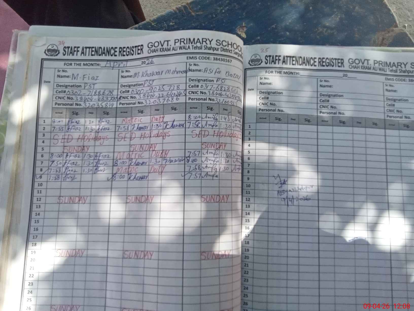 | Name: MU**** FI**** Designation: (School Headmaster's/Headmistress's) PST Phone/Cell Number: 03**** |
