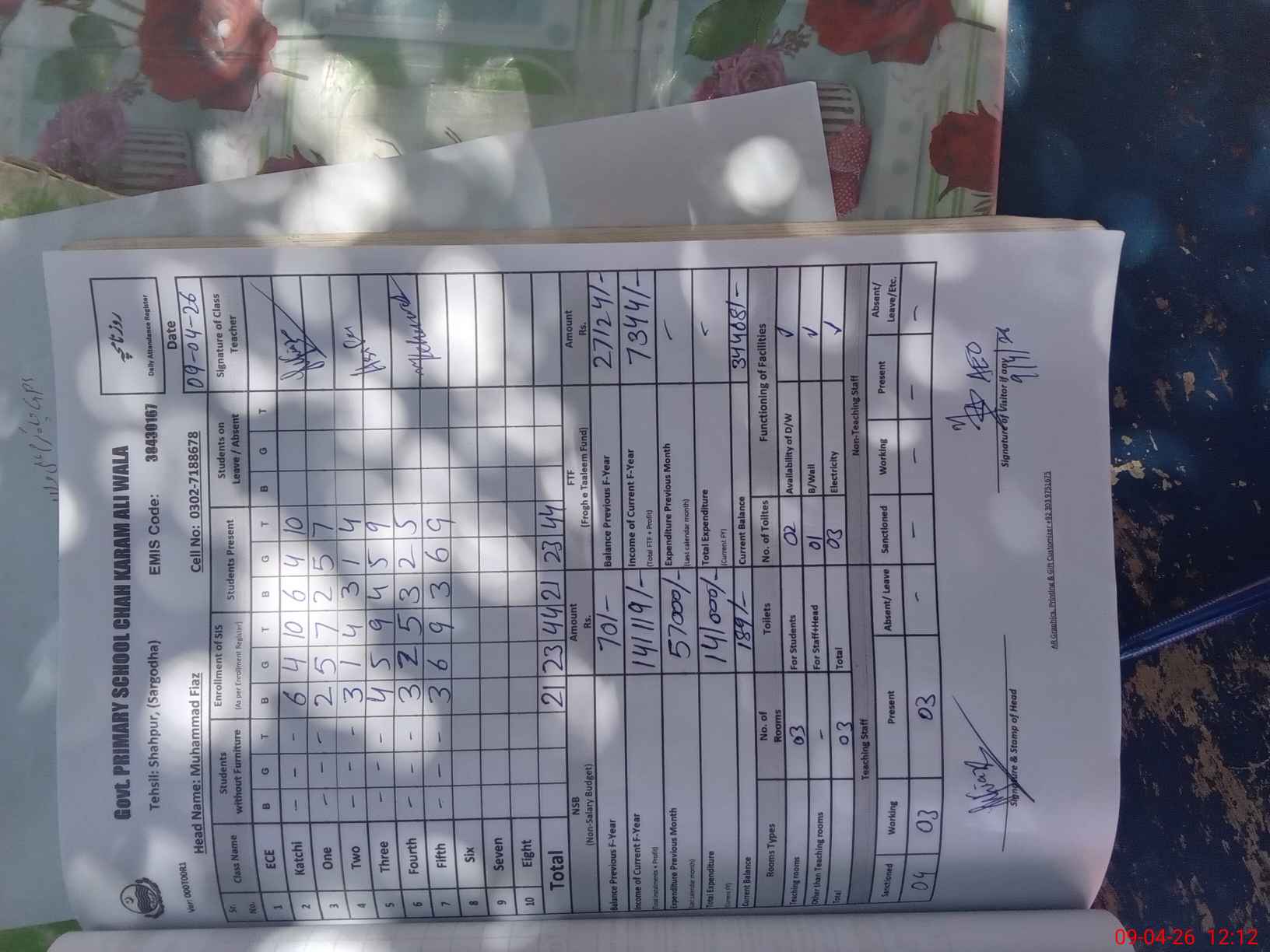 | EMIS Code: 38430167 | Name of School: GPS CHAH KRAM ALI WALA | |||