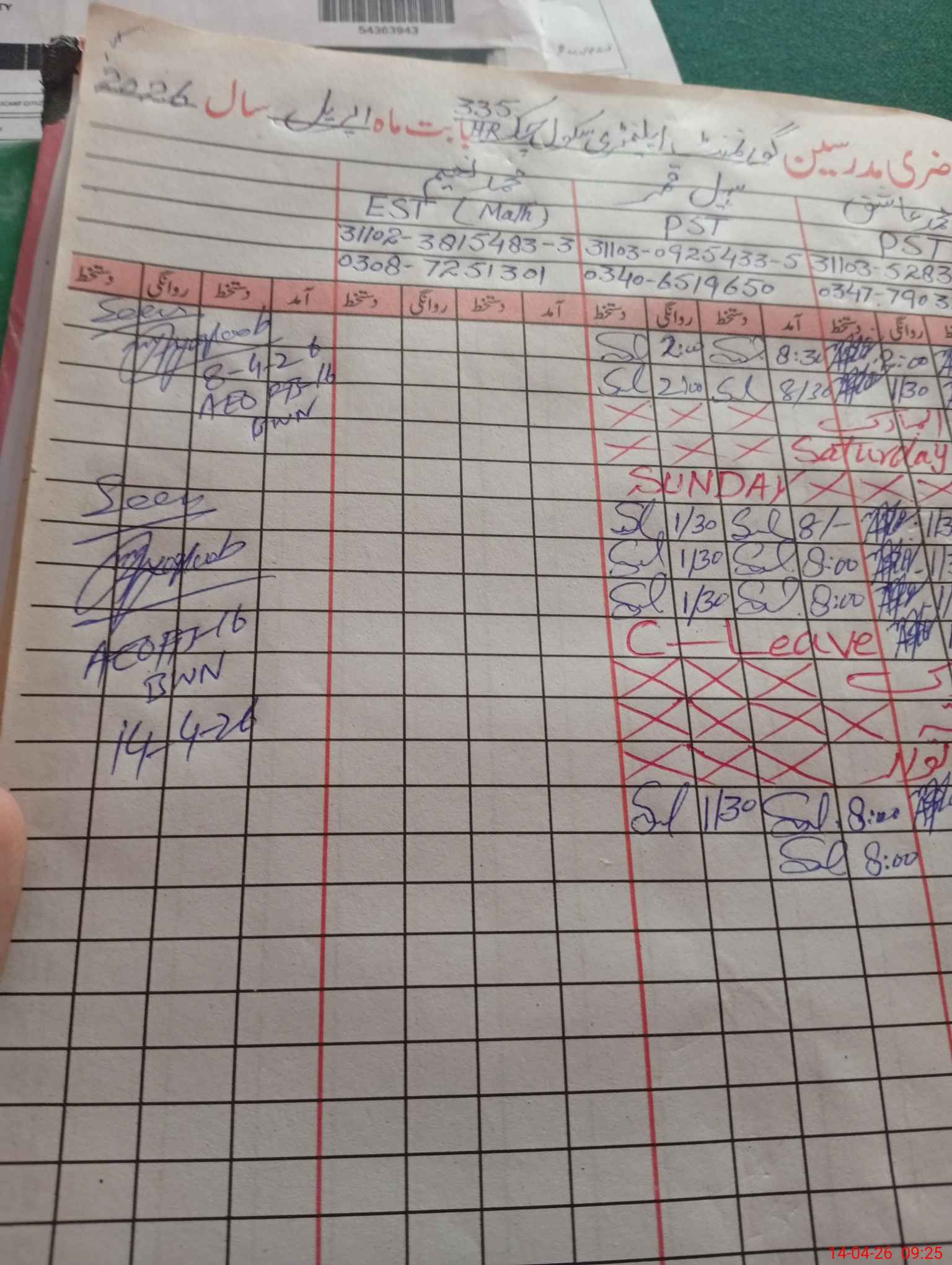 | 31**** | Mu**** Na**** | EST (Math) | Regular | 0 | 0 | 0 | 0 | 0 | 0 | 0 | 0 | 0 | Exam Duty |