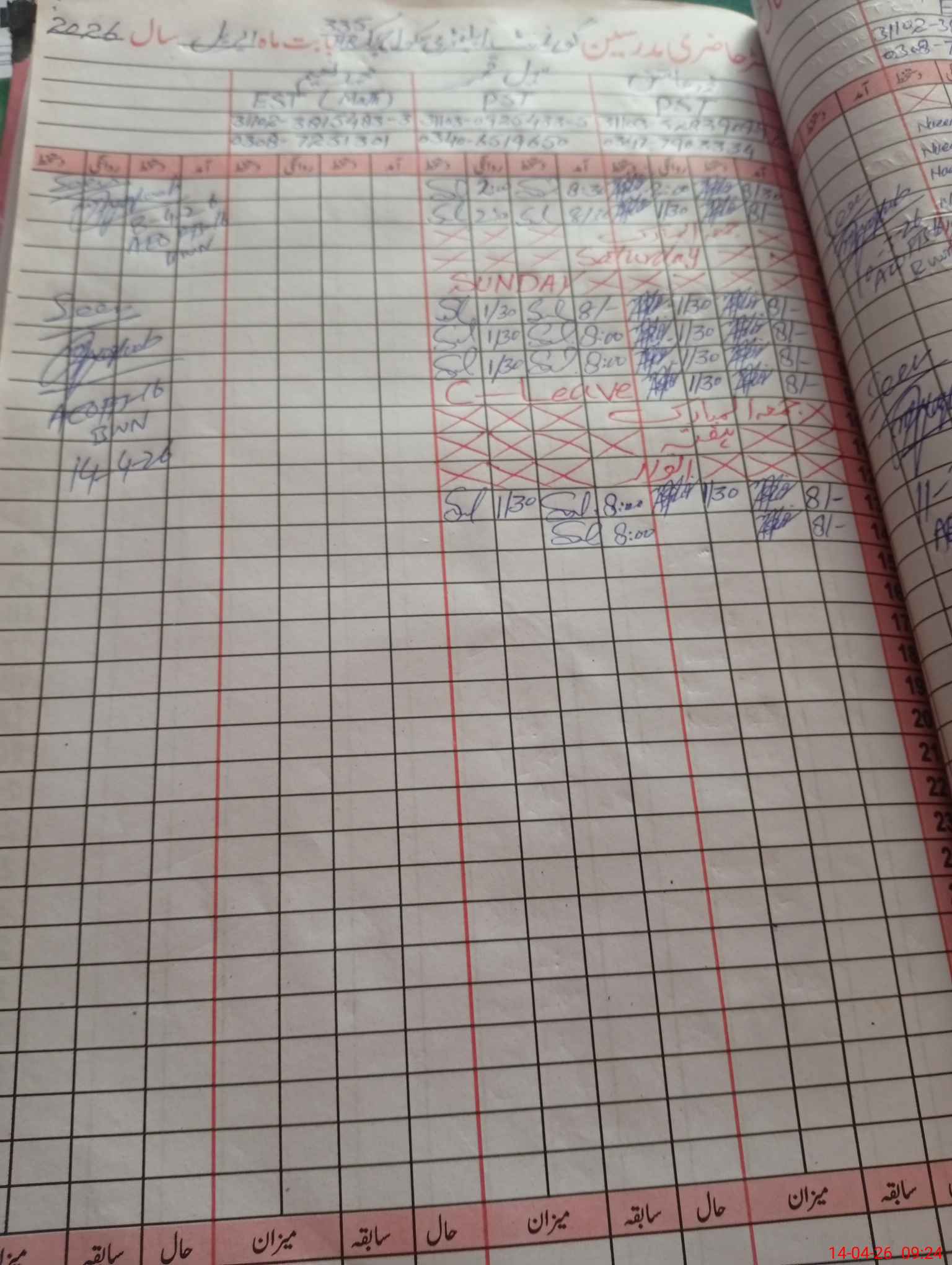 | Leave | Duty | Absent | Maternity | Medical | Ex- Pak |