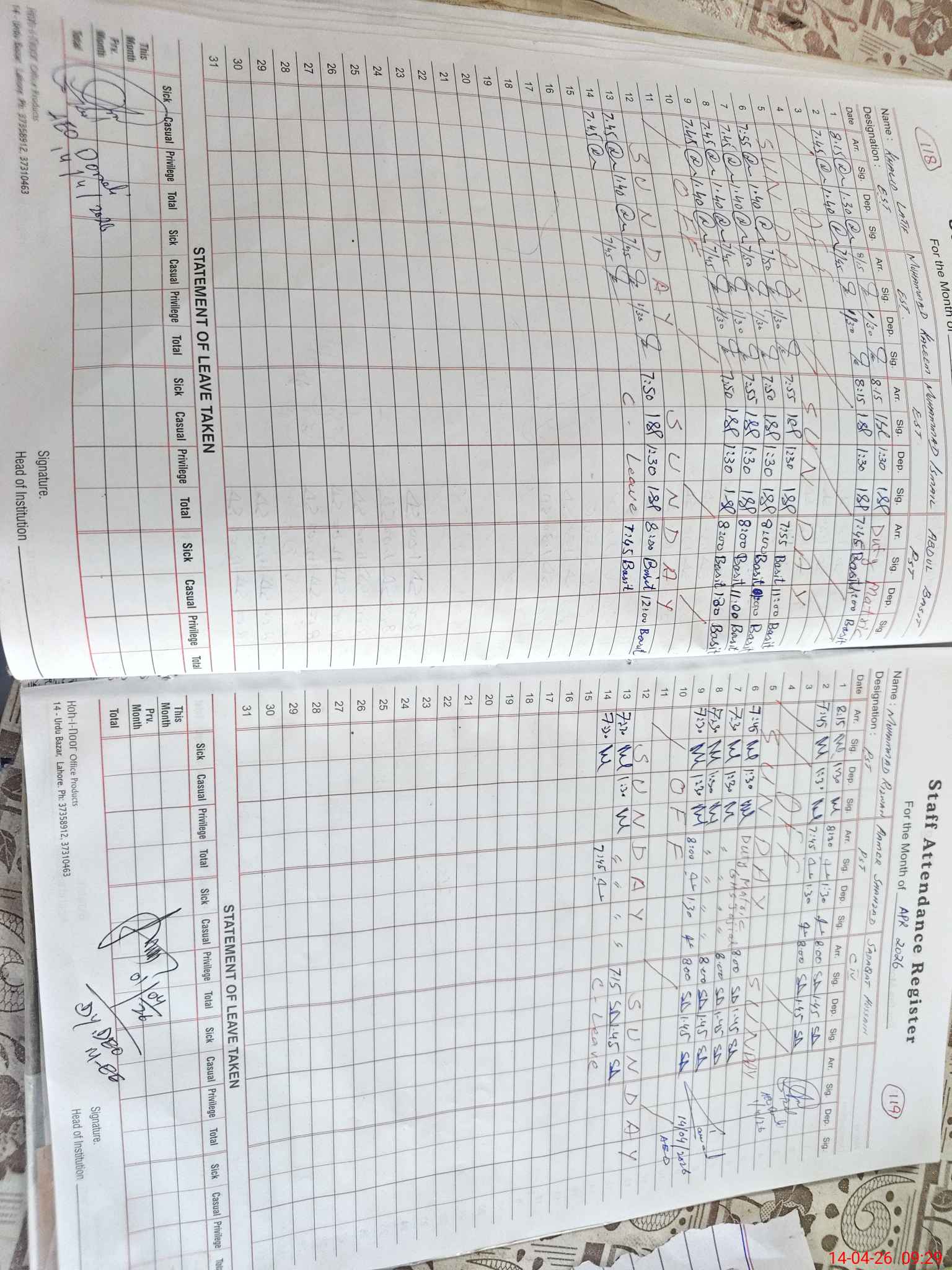 | Leave | Duty | Absent | Maternity | Medical | Ex- Pak |