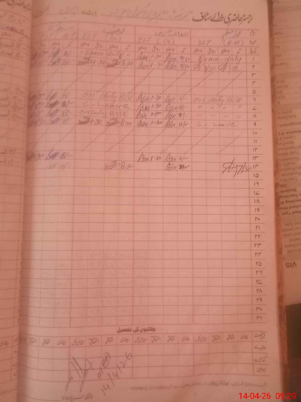 | CNIC | Full Name | Designation | R/C | Absence During Last Calender Month |