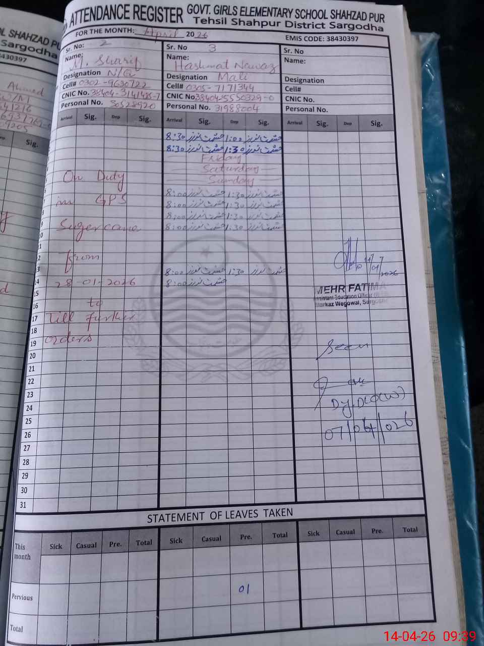 | EMIS Code: 38430397 | Name of School: GGES SHAHZAD PUR | |||