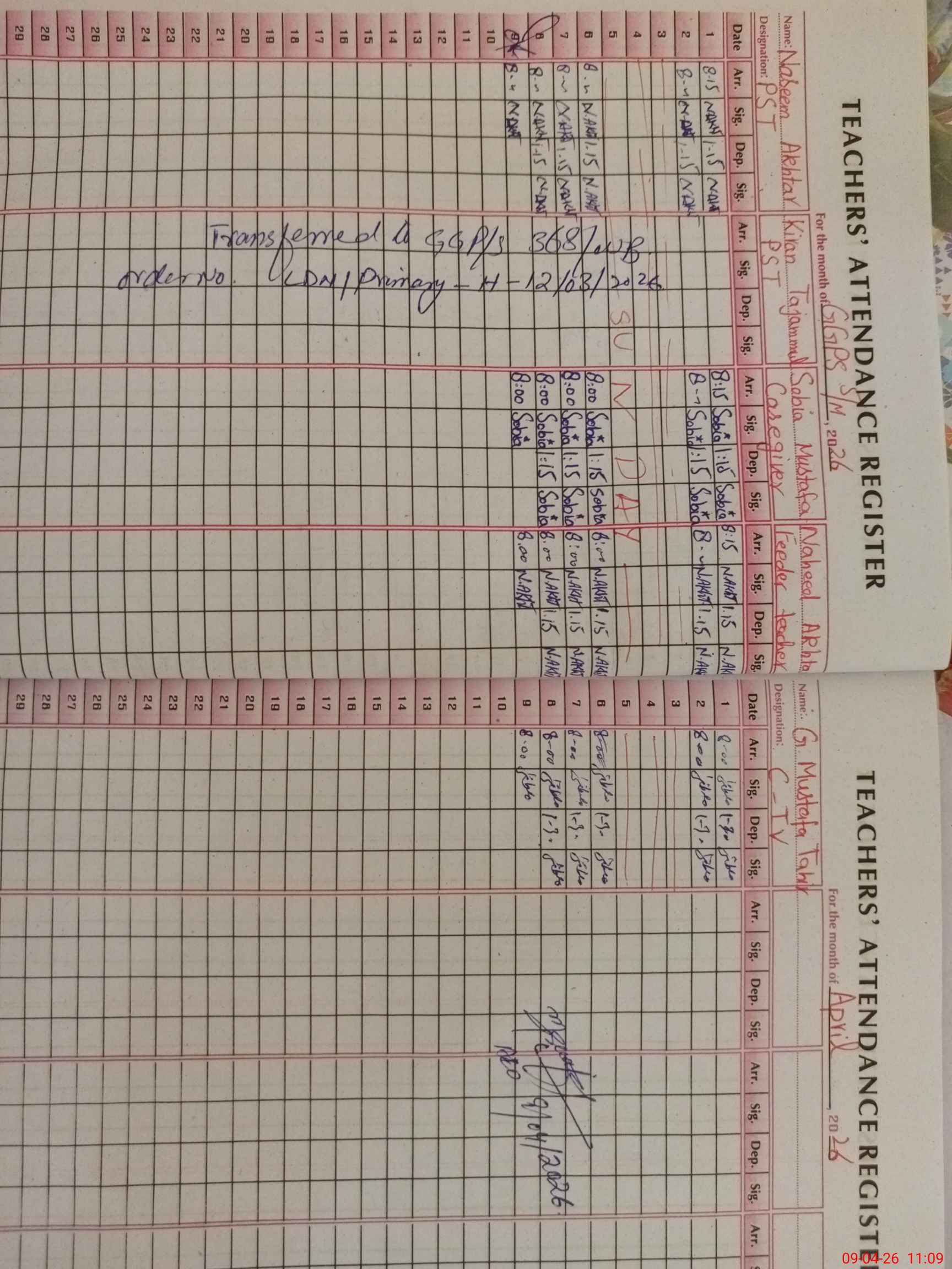 | Attendance Register | Head Teacher | MEA with School | Visit Proof |