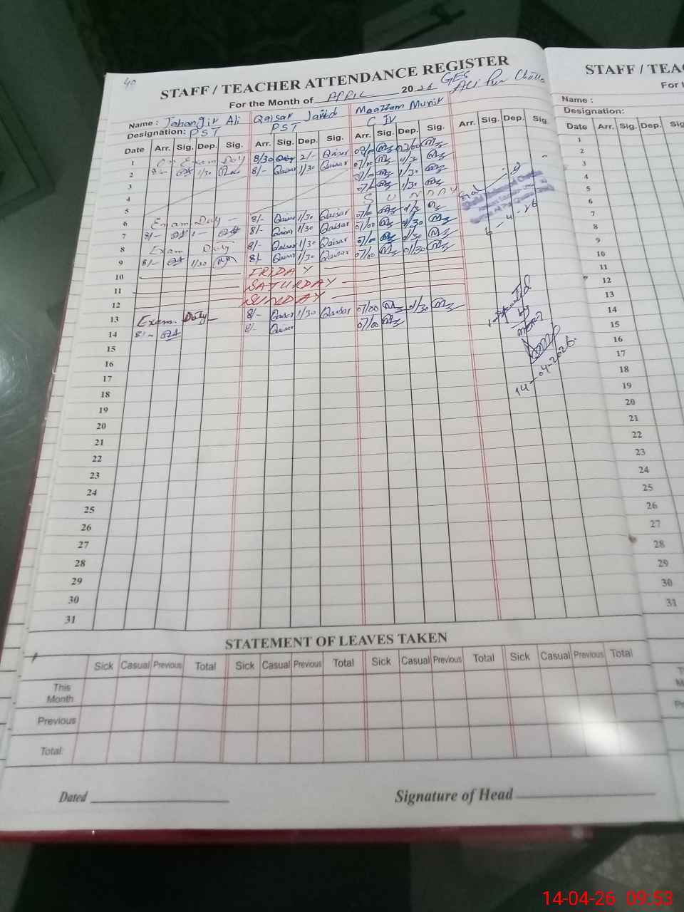 | 34**** | Sy**** Mu**** Al**** Ma**** Za**** | EST (Math) | Regular | 0 | 0 | 0 | 0 | 0 | 0 | 0 | 0 | 0 | Absent (Un-Authorized) |