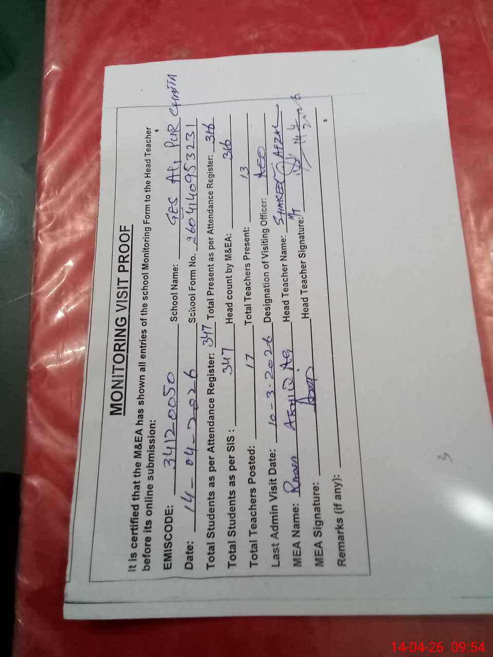 | EMIS Code: 34120050 | Name of School: GES ALI PUR CHATTHA | |||