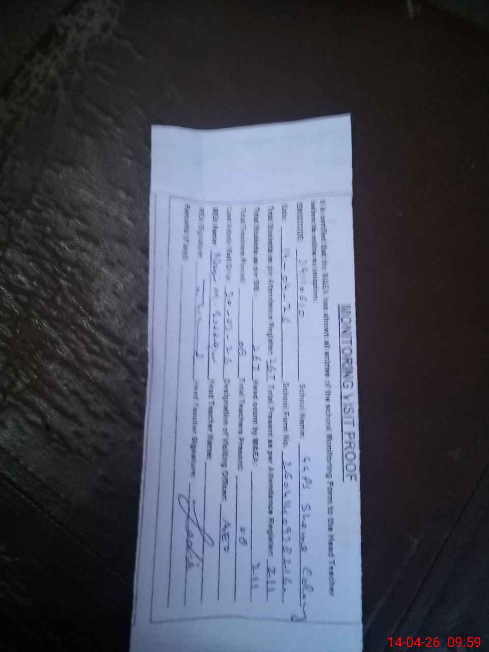 | Certified that this School was Inspected by the Undersigned MEA/DMO Today and the Information Stated Above is as Per Record. | |||||
