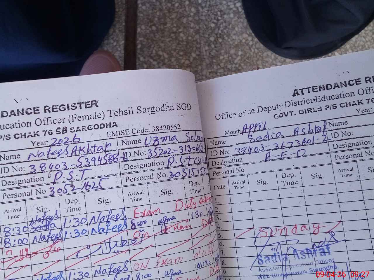 | Name: SA**** KA**** Designation: (School Headmaster's/Headmistress's) PST Phone/Cell Number: 03**** |