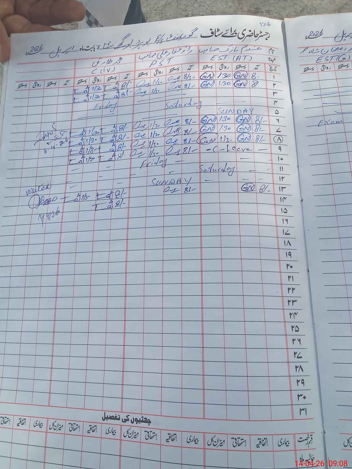 | 36**** | Gh**** Al**** | PST (Science-Math) | Regular | 0 | 0 | 0 | 0 | 0 | 0 | 0 | 0 | 0 | Absent (Un-Authorized) |